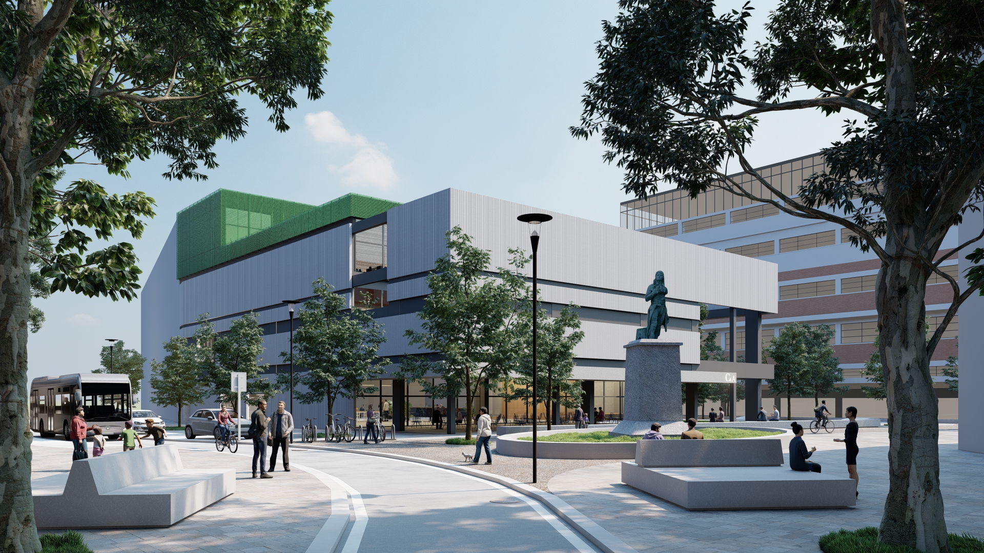 – Une extension sur toiture pour accueillir de nouvelles salles de formation et de réunion, répondant aux besoins du CPAS (accompagnement vers l’emploi) et de l’ULiège (espaces pédagogiques).