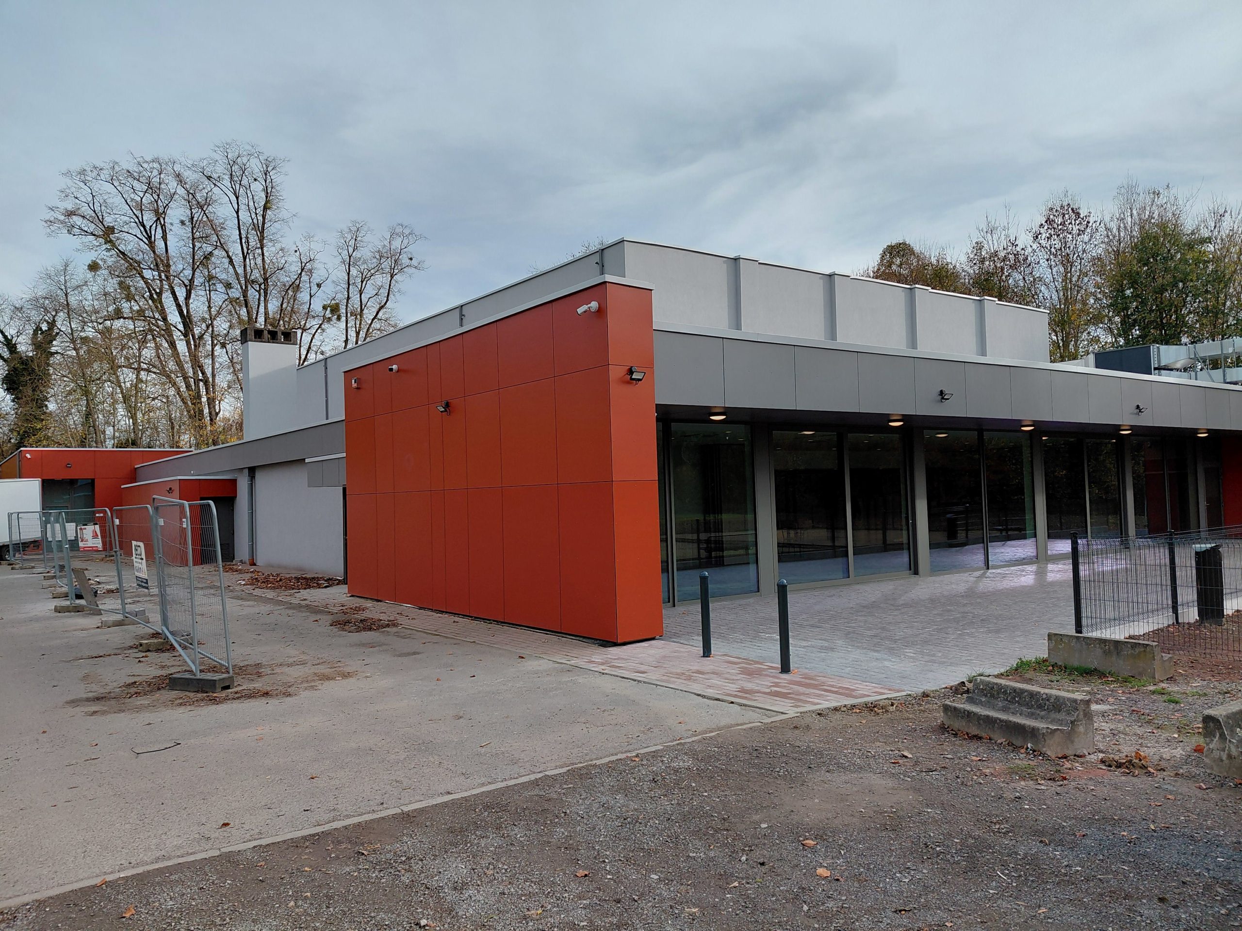 En parallèle, plusieurs espaces intérieurs sont modernisés : rénovation des vestiaires et cafétéria, pose d’un nouveau revêtement sportif dans la grande salle, remplacement du parquet du dojo et installation du dispositif audiovisuel.